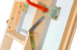 3. безукоризненность и комфорт. В моделях Fakro, в частности LTK thermo не предусмотрен клапан снижающий нагрузку на лестницу, но безопасность обеспечивается наличием бокового металлического поручня. Особенностью является наявность наконечников из качественной резины, которые выполняют роль предохранителя половой поверхности от возможных царапин и других повреждений. Практично предусмотрено наличие специального поручня, предназначенного для быстрого открывания и закрывания лестниц. Нижние перекладины лестницы не контактируют полом, в верхние с крышкой. Наличие противоскользящих выемок способствует обеспечению комфортного и безопасного применения. Компания выпускает металлические и деревянные чердачные лестницы. Все перечисленные выше элементы позволяют увеличить устойчивую надежность конструкции.